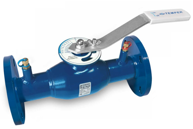 Temper balancing ball valves are designed for regulation (balancing) of the working fluid flow in heating, cold supply and ventilation systems. The ball has a special orifice and the valve is equipped with a scale of values. Regulation is carried out by turning the handle with the pointer. The selected position of the handle is fixed with a bolt and a nut-butterfly.
