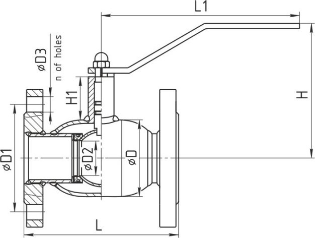 | DN | PN | Product number | L | L1 | D | D1 | D2 | D3 | H | H1 | n of holes | |